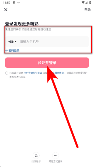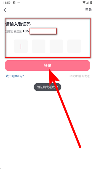 4、輸入收到的驗證碼,點擊粉色的登錄按鈕,完成注冊登錄。