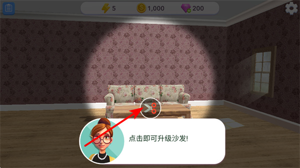 3、點(diǎn)擊沙發(fā)上的升級標(biāo)識,可對沙發(fā)進(jìn)行升級,提升家具的品質(zhì)和外觀,改善客廳的整體裝修效果。