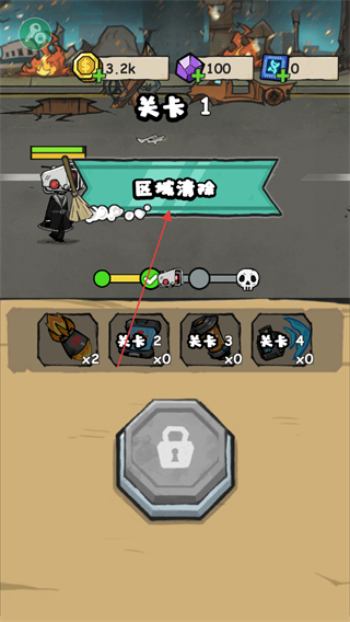 1、進(jìn)入關(guān)卡1,目標(biāo)是區(qū)域清除,留意上方金幣、鉆石數(shù)量,開(kāi)始戰(zhàn)斗。