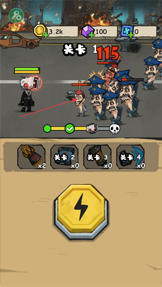 4、持續(xù)攻擊敵人,完成關(guān)卡進(jìn)度條上的目標(biāo),順利通過(guò)關(guān)卡。