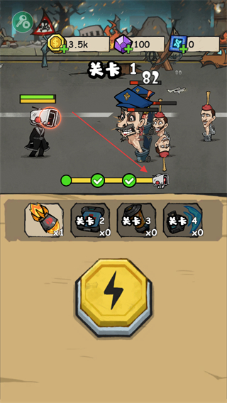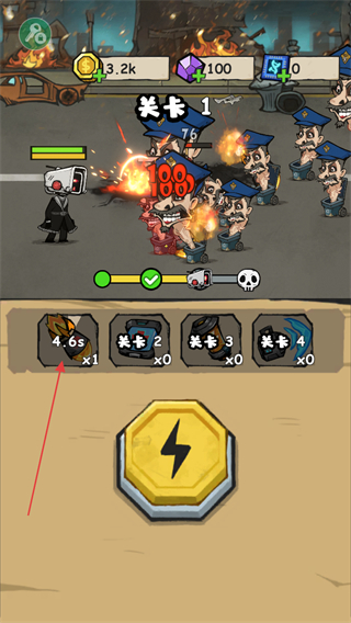 2、敵人出現(xiàn)后,點(diǎn)擊下方閃電按鈕,釋放技能攻擊敵人,快速削減其數(shù)量。