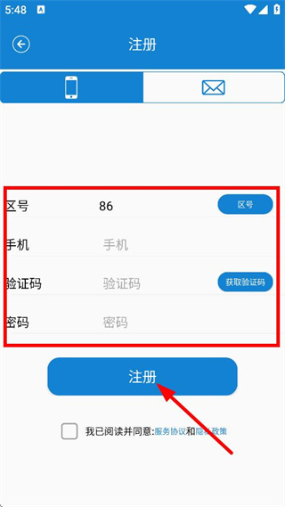 3、在注冊頁面,輸入手機(jī)號驗(yàn)證碼密碼,點(diǎn)擊注冊,完成賬號注冊。