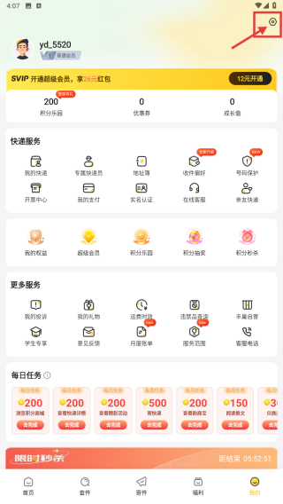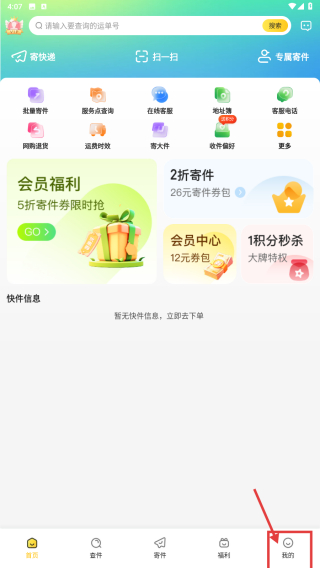 1、打開快遞類應用,點擊底部我的選項,進入個人中心頁面。