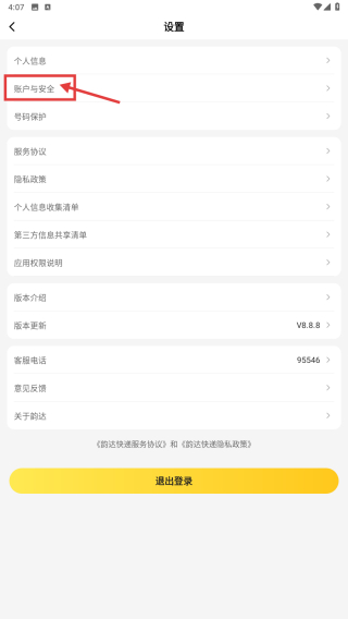 3、在設置界面,點擊賬戶與安全選項,進入賬戶與安全頁面。