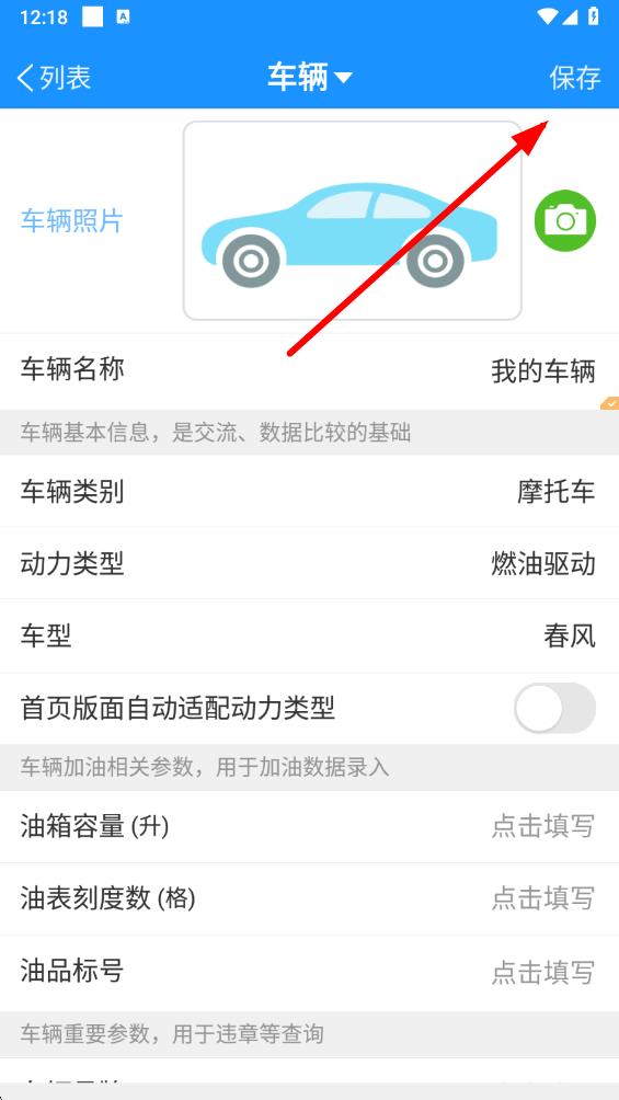 6、最后在車輛信息頁(yè)面按提示填寫車輛信息后,點(diǎn)擊保存即可。