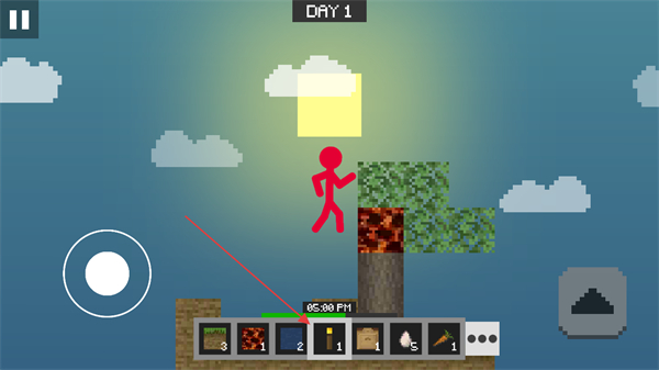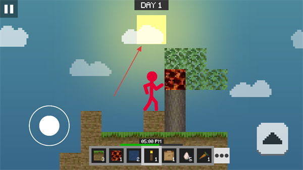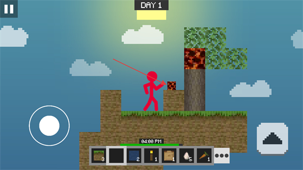 1、操控左側(cè)虛擬搖桿移動(dòng)火柴人,在空島中探索樹木等資源點(diǎn)。