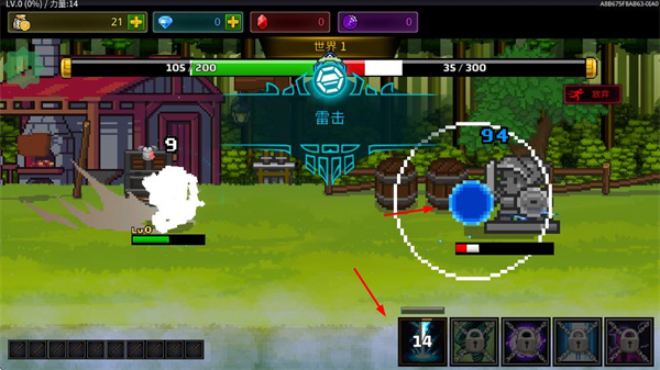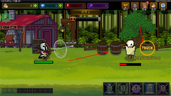1、進(jìn)入游戲界面后,觸摸屏幕進(jìn)行攻擊,對抗敵人,開啟冒險(xiǎn)之旅。