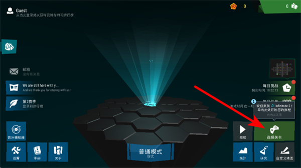 2、點(diǎn)擊選擇關(guān)卡按鈕,進(jìn)入關(guān)卡選擇界面,挑選合適關(guān)卡挑戰(zhàn),逐步提升游戲難度與資源獲取效率。
