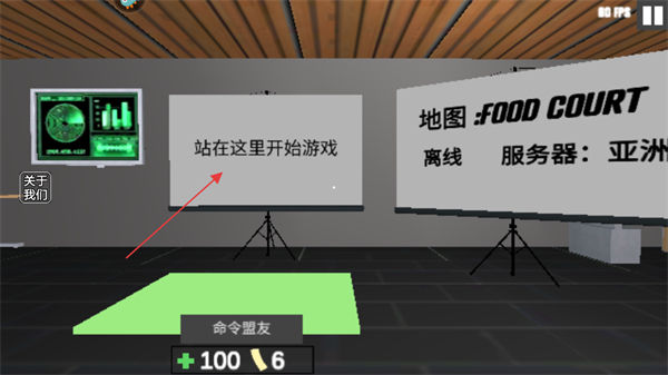 1、站在站在這里開始游戲的綠色區(qū)域,進(jìn)入游戲場景。