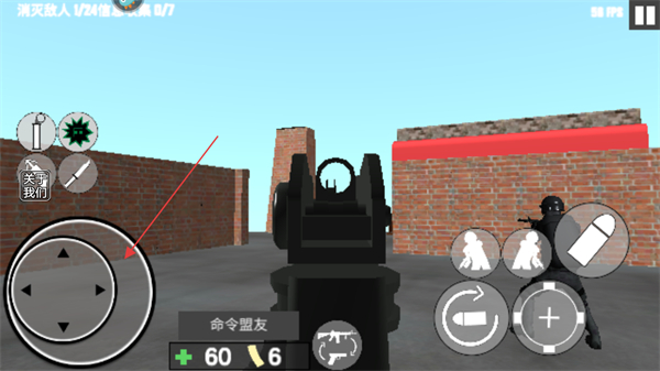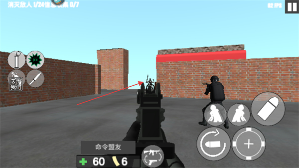 3、瞄準(zhǔn)敵人,發(fā)射子彈消滅他們,同時可指揮盟友協(xié)同作戰(zhàn)。