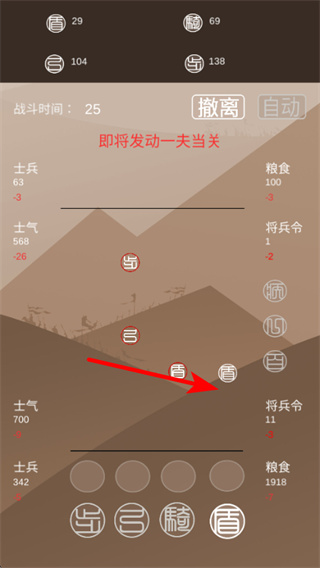 核心圍繞輕步兵、工兵、輕騎兵、盾兵四類兵種展開,各兵種有獨特優(yōu)劣勢,需在屬性面板精準調兵遣將,作戰(zhàn)前需確保糧草充足,根據(jù)兵種特點搭配己方陣容。