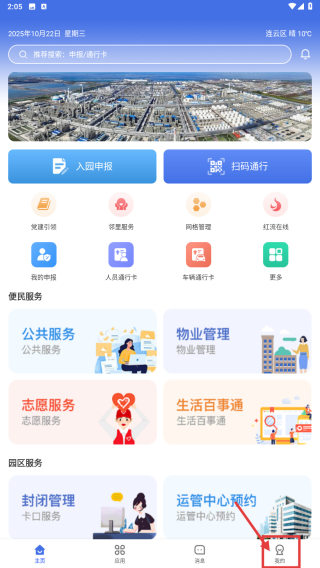 1、打開石化園區(qū)服務(wù)應(yīng)用,點(diǎn)擊底部我的選項(xiàng),進(jìn)入個(gè)人中心頁(yè)面。