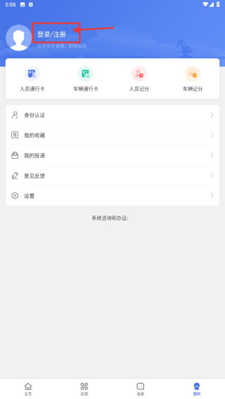 2、在個(gè)人中心頁(yè)面,點(diǎn)擊登錄/注冊(cè)選項(xiàng),進(jìn)入登錄注冊(cè)界面。