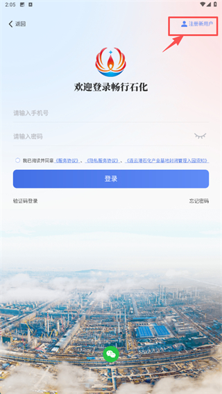 3、在登錄注冊(cè)界面,點(diǎn)擊注冊(cè)新用戶按鈕,進(jìn)入用戶注冊(cè)頁(yè)面。