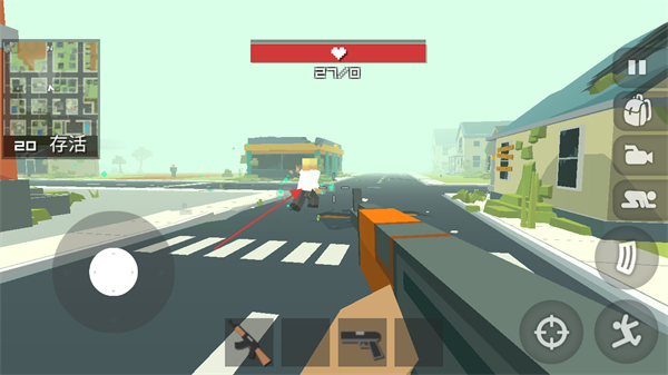 地圖中散落各類武器,從沖鋒槍到火箭筒一應(yīng)俱全,還有藥品、手雷等道具,遭遇敵人時(shí),通過(guò)右側(cè)按鍵瞄準(zhǔn)射擊,自動(dòng)拾取功能簡(jiǎn)化物資收集流程。