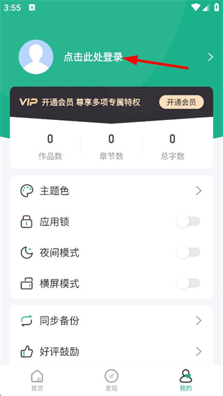 2、在個(gè)人中心頁(yè)面,點(diǎn)擊點(diǎn)擊此處登錄,進(jìn)入登錄選擇頁(yè)面。