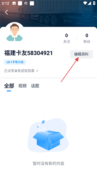 2、在個(gè)人主頁(yè),點(diǎn)擊編輯資料可進(jìn)入資料編輯頁(yè)面。