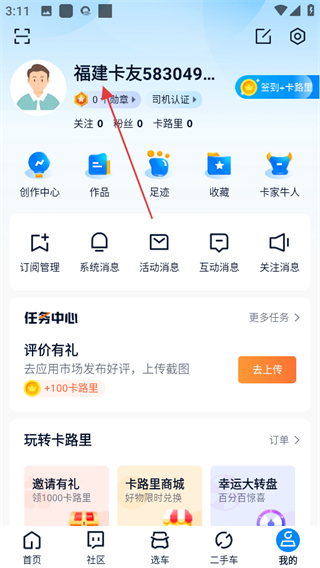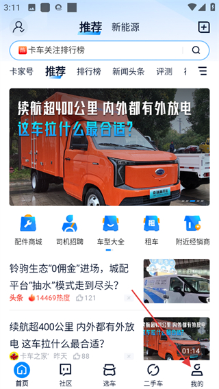 1、打開(kāi)卡車(chē)之家,點(diǎn)擊頁(yè)面右下角我的,可進(jìn)入個(gè)人中心頁(yè)面。