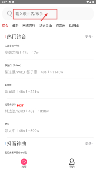 1、打開多多鈴聲應(yīng)用,點(diǎn)擊首頁搜索框。