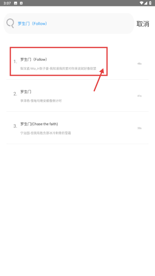 2、在搜索結(jié)果頁面,點(diǎn)擊羅生門-Follow歌曲條目,進(jìn)入歌曲詳情頁。