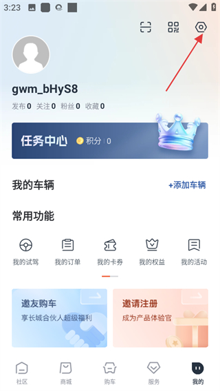 1、打開長(zhǎng)城汽車,點(diǎn)擊頁(yè)面右下角我的,可進(jìn)入個(gè)人中心頁(yè)面。