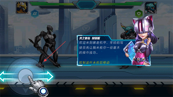 1、按照提示控制搖桿來前后移動,操控機甲移動。