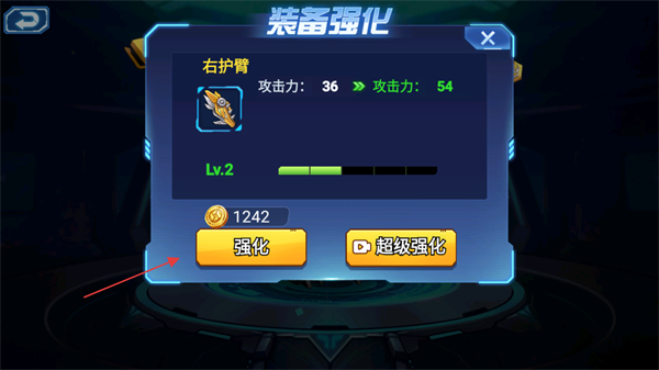 3、點(diǎn)擊強(qiáng)化選擇需要強(qiáng)化的裝備進(jìn)行強(qiáng)化屬性提高攻擊傷害。