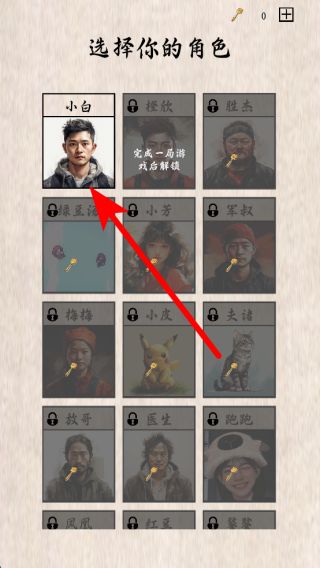 2、選擇游戲角色,初始可選擇小白,后續(xù)可解鎖其他角色,不同角色可能有不同經(jīng)營(yíng)加成或特色,為擺攤帶來多樣體驗(yàn)。