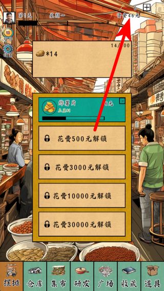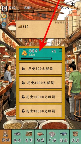 4、通過銷售商品獲取資金,合理規(guī)劃資金使用,一部分用于解鎖新商品,一部分用于升級(jí)攤位設(shè)施,持續(xù)提升經(jīng)營(yíng)規(guī)模與收益。