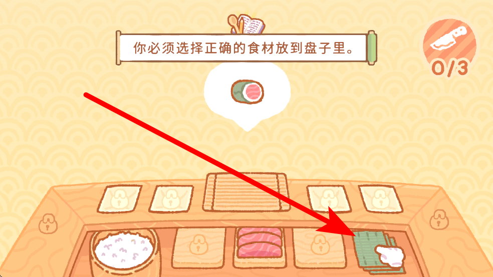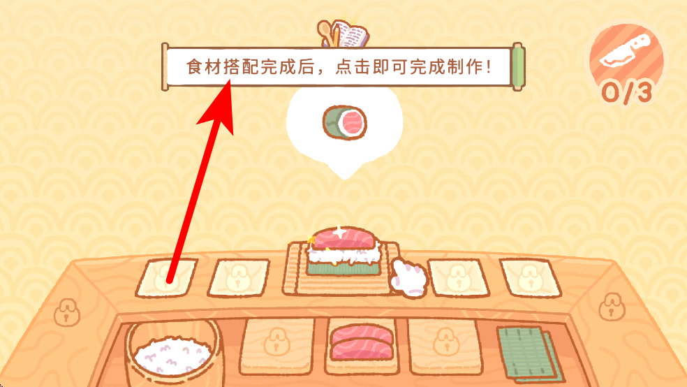 3、食材搭配完成后,點擊即可完成壽司制作,制作過程中注意制作速度,確保訂單及時交付。