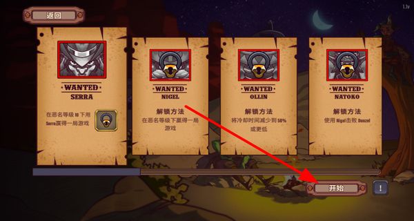 1、選擇通緝令上的角色,點擊開始進入游戲,不同角色有不同解鎖方法,根據(jù)喜好選擇開啟游戲。