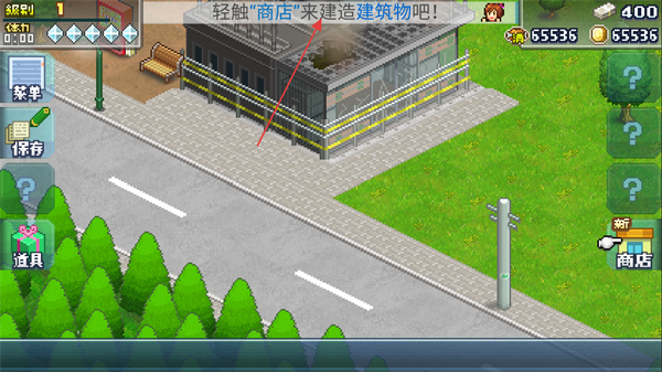 1、進入游戲,按箭頭指示,輕觸商店,進入建造界面。