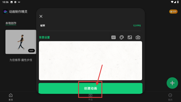 2、在個人創(chuàng)作頁面,點擊創(chuàng)建動畫按鈕,進入動畫創(chuàng)作頁面。