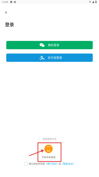 3、在登錄方式選擇界面,點擊手機號碼登錄選項,進入手機號登錄頁面。