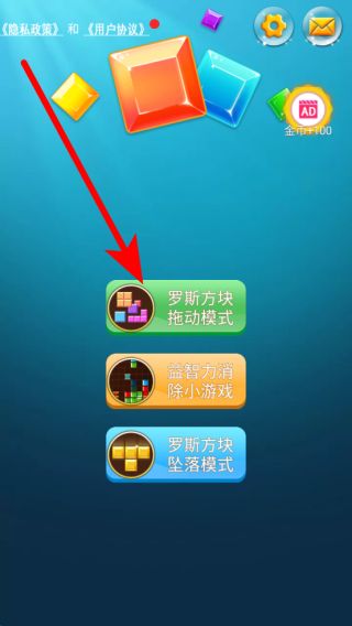 1、進入游戲選擇模式,如拖動模式可將下方方塊拖入上方格子,玩家即可開啟游戲。