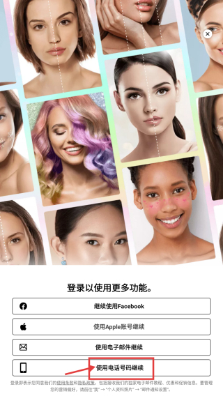 3、在登錄方式選擇界面,點(diǎn)擊使用電話號(hào)碼繼續(xù)選項(xiàng),進(jìn)入手機(jī)號(hào)登錄頁(yè)面。