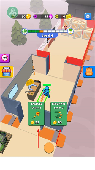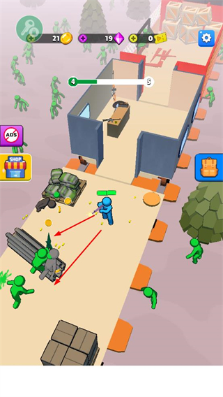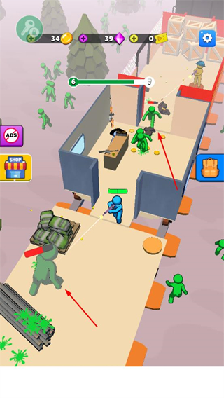 2、攻擊敵人,收集金幣資源,積累游戲財富,助力武器升級和新內(nèi)容解鎖。