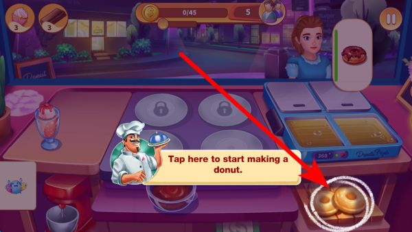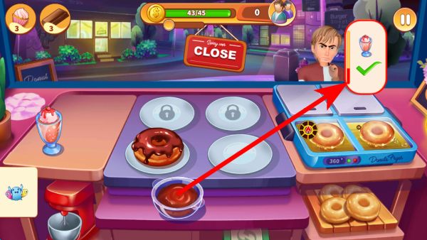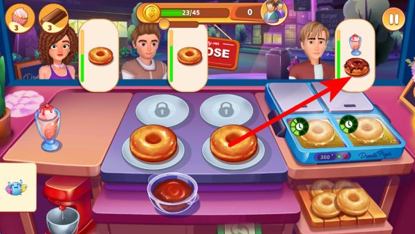2、顧客會(huì)有不同的訂單需求,有的只需要甜甜圈,有的還需要搭配飲品,需及時(shí)關(guān)注顧客的訂單提示,快速準(zhǔn)備對(duì)應(yīng)的食物。