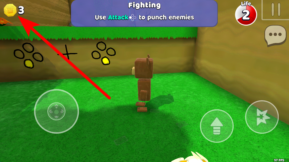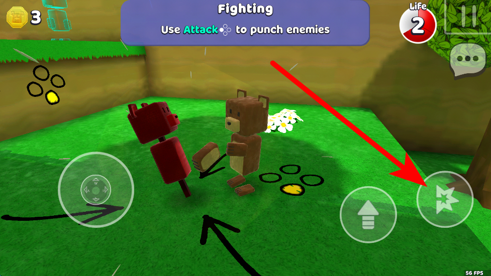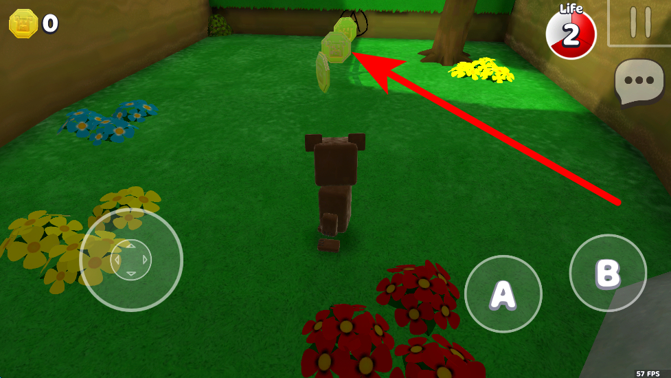 2、左側(cè)虛擬搖桿控制小熊移動(dòng)方向,右側(cè)箭頭按鈕可讓小熊跳躍,在場(chǎng)景中靈活移動(dòng)探索不同區(qū)域。