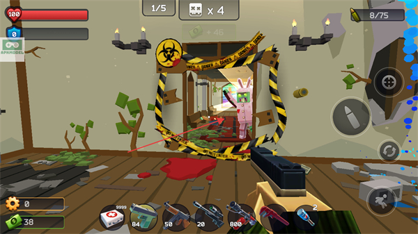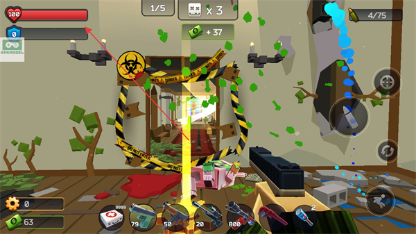 2、擊殺僵尸后可獲得金幣獎(jiǎng)勵(lì),積累金幣用于升級(jí)或購(gòu)買(mǎi)道具。