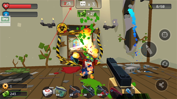 3、近距離面對(duì)僵尸時(shí),精準(zhǔn)射擊其弱點(diǎn),同時(shí)注意自身生命值。