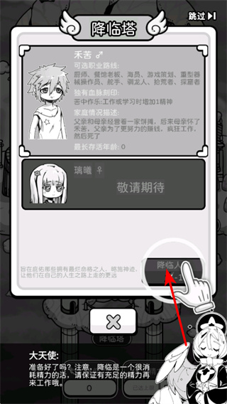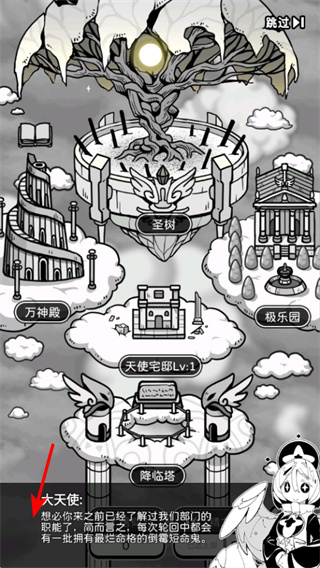 1、進入游戲劇情引導(dǎo)界面后,跟隨大天使的劇情介紹了解霉運死劫世界觀設(shè)定,這是熟悉游戲背景的關(guān)鍵步驟,需耐心閱讀劇情文本。