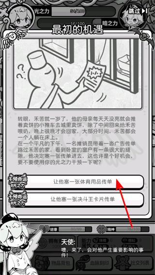 4、遇到機遇選擇界面,需根據(jù)職業(yè)規(guī)劃選擇,同時消耗2光之力點擊開始命運按鈕,解鎖角色專屬成長線,推動劇情與戰(zhàn)力雙重發(fā)展。