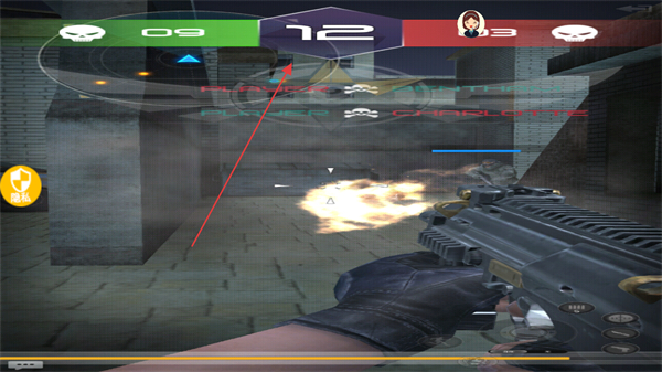1、在對戰(zhàn)中使用槍械射擊,關(guān)注上方的分數(shù)和擊殺數(shù),消滅敵人提升己方分數(shù)。