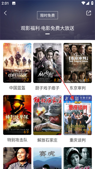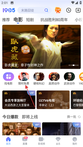2、在電影板塊中,點擊限時免費可進入限時免費電影列表頁面。