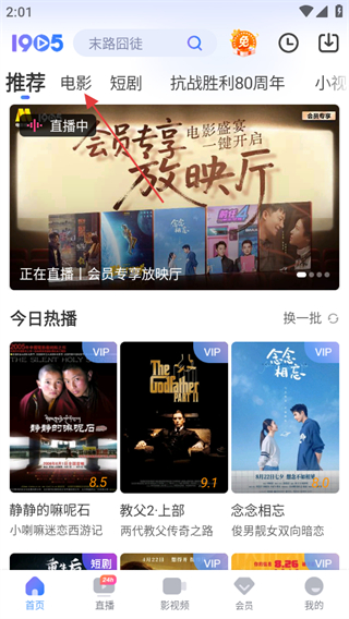 1、打開1905電影網(wǎng),點擊頁面上方電影標簽,可進入電影板塊。