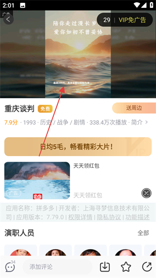 3、在限時免費電影列表頁面,點擊心儀電影如重慶談判可進入電影播放頁面。