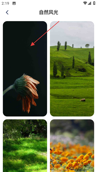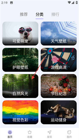 2、在分類板塊中,點擊自然風光可進入自然風光壁紙列表頁面。