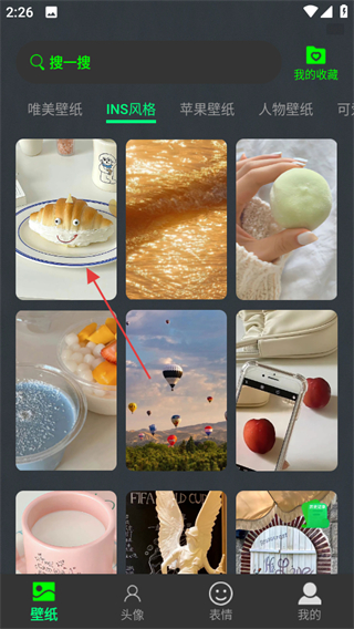 2、在INS風(fēng)格壁紙板塊中,點(diǎn)擊心儀壁紙可進(jìn)入壁紙詳情頁面。