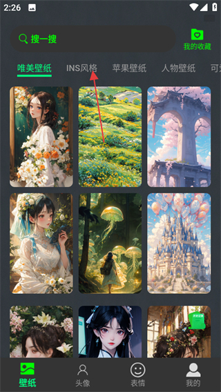 1、點(diǎn)擊頁面上方INS風(fēng)格標(biāo)簽,可進(jìn)入INS風(fēng)格壁紙板塊。